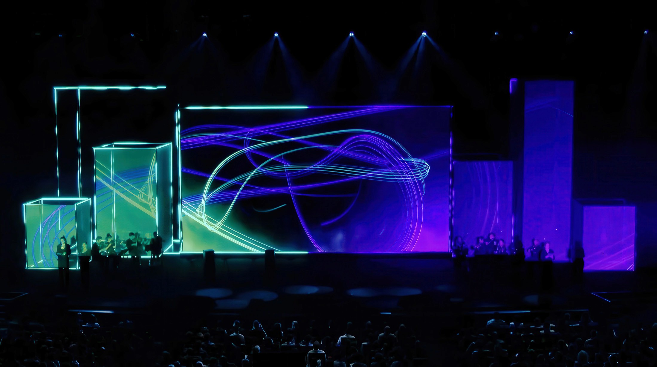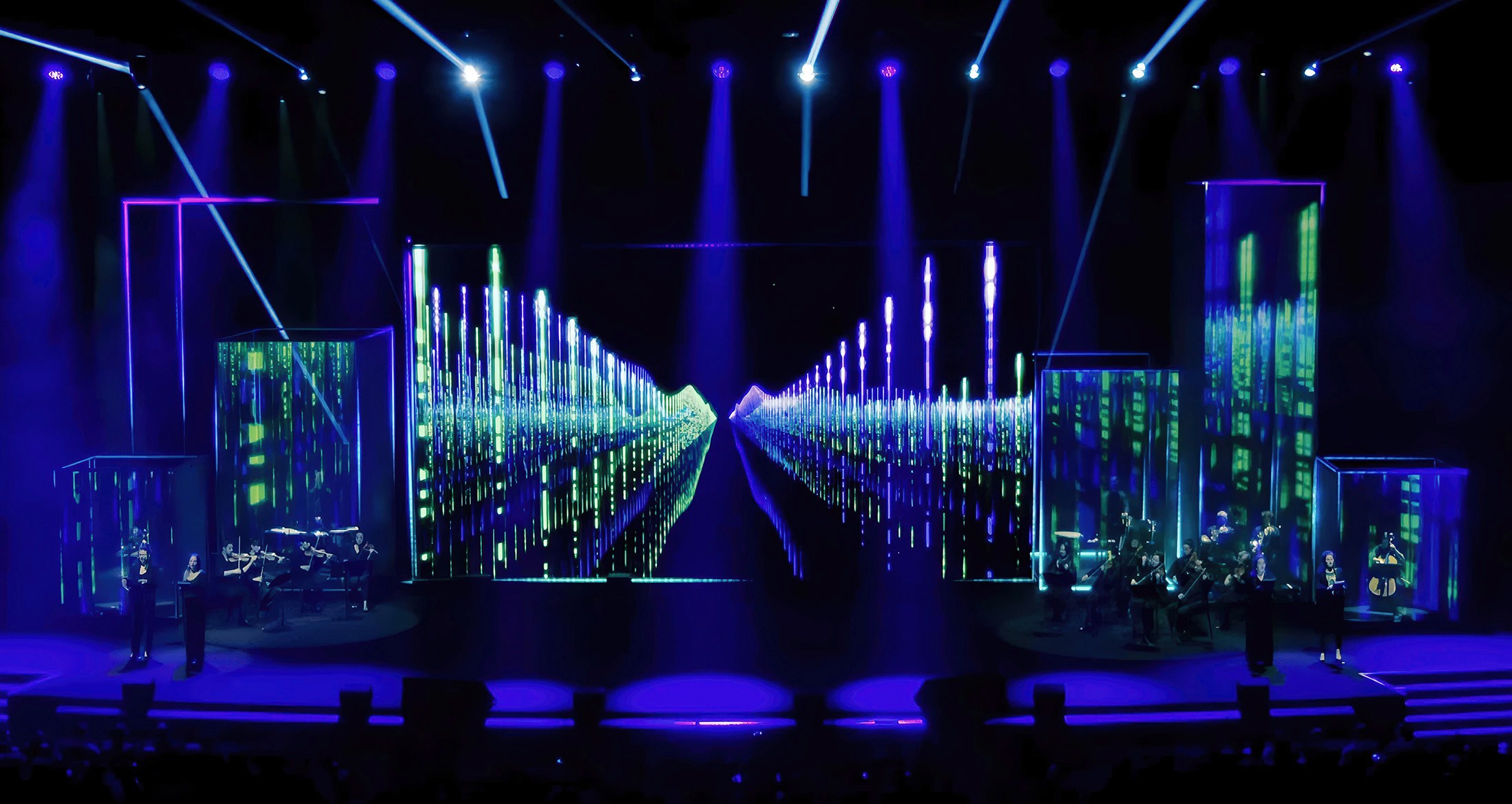 Agency: La Lune Rousse, Laurent Dufay and Denis Legat | Client: Wavestone | Creative & Show Director: La Petite Lumière, Fanny Moreau | Conductor, arranger and composer: Uele Lamore | Show Caller: Valérie Blin | Production manager: Pascale Gaucheron | Project director: Anne Jérôme | Scenography: Studio Epatant, Etienne Villotte | Technical Director: Régis Elatri | Realisation: Rémy Paquet | Sound engineering: La 8e note | Light design: 4eleven, Nicolas Valette | Audiovisual technical provider: Mvision | Video contents: Art direction and animation: Magic Bird